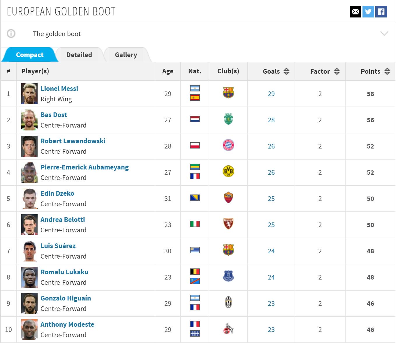 Total Barca On Twitter Lionel Messi Spends Another Week At The Top Of The European Golden Boot Standings Fierce Competition From Bas Dost Transfermarkt Https T Co Pgqcamylf8